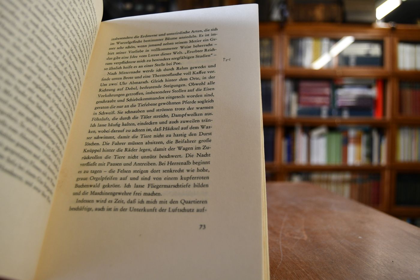 Beschreibung Schutzumschlag berieben, bestoßen, mit Einrissen und gebräunt. Aus Raucherhaushalt. Titelrückseite mit Fleck. Durchgehend mit Bleistiftmarginalien von Gerd Bergfleth, der sich auf dem hinteren Vorsatz auch als Besitzer eingetragen hat.