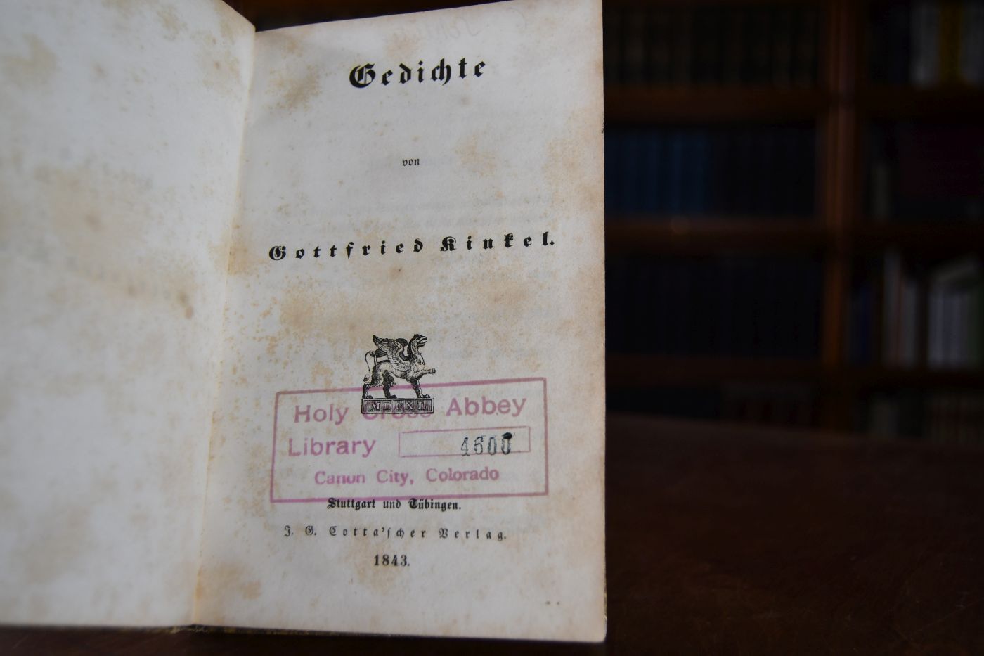 Beschreibung Einband berieben und bestoßen. Bibliotheksband (Holy Cross Abbey Library, Canon City, Colorado) mit den üblichen Stempeln. HAndschriftlicher Provinienzeintrag von 1885 auf dem fliegenden Vorsatz. Durchgehend fleckig.