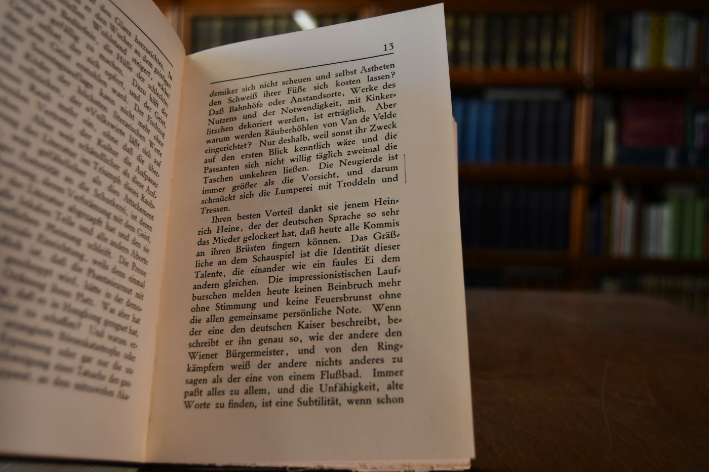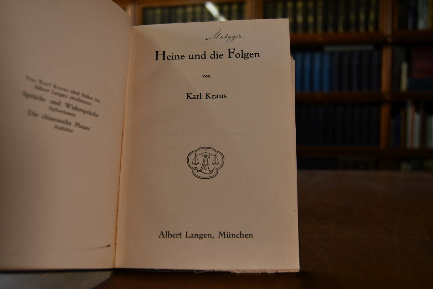 Beschreibung Einband berieben. Beiliegend: Werner Kraft: Karl Kraus, entnommen aus Merkur V. Jahrgang 2. Heft, Februar 1951, S. 102-116. WG I, 11.