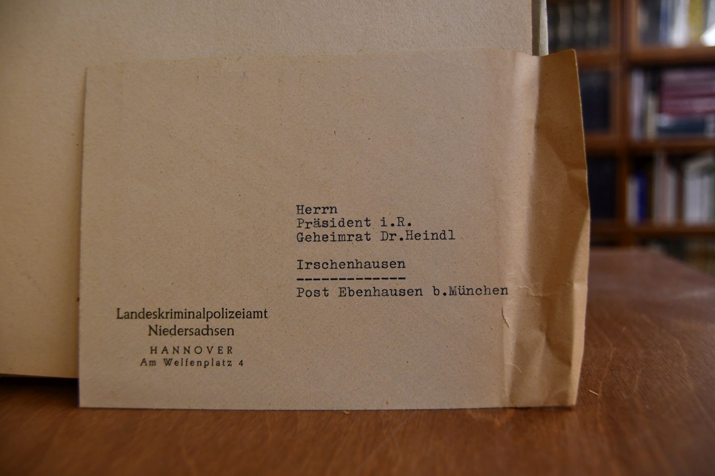 Beschreibung Einband berieben, bestoßen, angeschmutzt und mit Einrissen. Papierbedingt gebräunt. Beiliegend ein Briefumschlag des Landeskriminalpolizeiamtes an Präsident i.R. Geheimrat Dr. Heindl.
