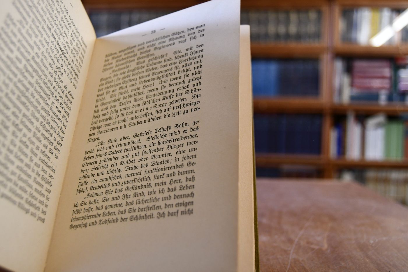 Beschreibung Einband berieben, bestoßen und fleckig. Falz vor Titel geöffnet. Aus Raucherhaushalt. Gelegentlich fleckig. Mit Bleistiftanstreichungen, -marginalien und Besitzereintrag von Gerd Bergfleth.