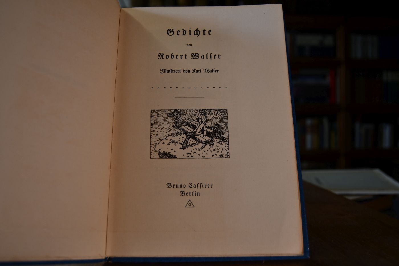 Beschreibung Einband berieben und bestoßen. Spiegel blasig. Papierbedingt gebräunt. Wenige Ankreuzungen an den Gedichten und im Inhaltsverzeichnis. Handschriftlicher Besitzereintrag (Käte Bremermann) auf dem fliegenden Vorsatz und handschriftliche Widmung auf dem Vorsatz. Zensurstempel auf dem Titel. Beiliegend ein Zeitungsartikel von Franz Blei über Robert Walser. Zweite Ausgabe der erstmals 1909 in kleiner Auflage erschienenen Gedichte, die zuvor verstreut in verschiedenen Zeitschrften erschienen waren. Die Radierungen jener Ausgabe liegen hier als Reproduktionen vor. "Gute Lyrik, zu der die Bilder in edler Harmonie stehen, eine schöne Schrift auf bestem Papier, das alles in einem farbenprächtigen entzückenden Einband: ein Genuß!" (Der Zwiebelfisch 1919, zitiert nach Badorrek-Hoguth).