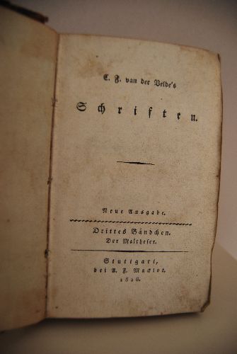 Beschreibung Einband berieben, bestoßen, angeschmutzt und bis auf das hintere Vorsatz vom Buchblock gelöst. Innen durchgehend etwas fleckig bzw. angeschmutzt. Einige Seiten vorgefallen (nicht gelöst) und am Rand mit Einrissen und Knickspuren. Gutes Leseexemplar. "Carl Franz van der Velde (* 27. September 1779 in Breslau, Schlesien; † 6. April 1824 ebenda) war ein deutscher Stadtrichter und Autor von historischen Romanen. Der als Sohn des von einer Hugenottenfamilie abstammenden Stempelrendanten Johann van der Velde und der Beata Rosina van der Velde, geborene Gartschok, am 27. September 1779 in Breslau geborene Carl Franz van der Velde arbeitete nach seinem Studium der Rechte als Stadtrichter und betätigte sich nebenbei als Schriftsteller. Dabei verfasste er vor allem Fortsetzungsgeschichten für die Dresdner Abend-Zeitung. 1823 wechselt er erstmals mit der Erzählung Das Liebhaber-Theater auf das Feld der Humoreske, um damit eine neue Tradition zu begründen.[3] Seine Sämtlichen Schriften erschienen 1819–1827 in 25 Bänden.[4] Er starb bereits im Alter von 44 Jahren am 6. April 1824. Die beiden letzten Werke erschienen posthum. Er war mit Phillipine Wilhelmine Elisabeth Schleyer († 1856) verheiratet, mit der er eine Tochter, Bertha van der Velde (* 19. Dezember 1809; † 9. November 1834),[5] und zwei Söhne, Arnold Johann Carl Franz Fr. W. Van der Velde (1806–1882) und Otto van der Velde († 1841) hatte." (Wikipedia)