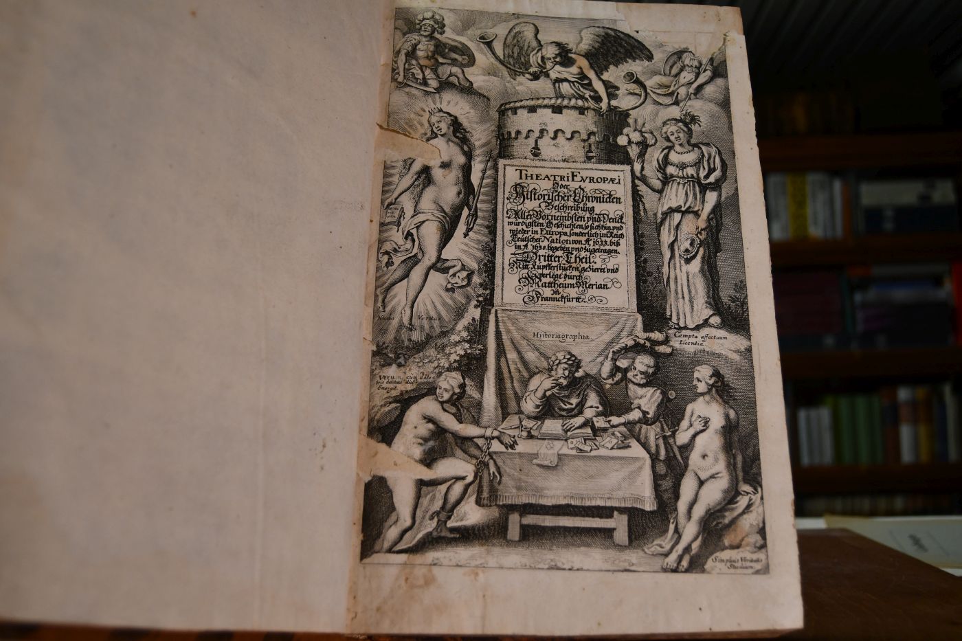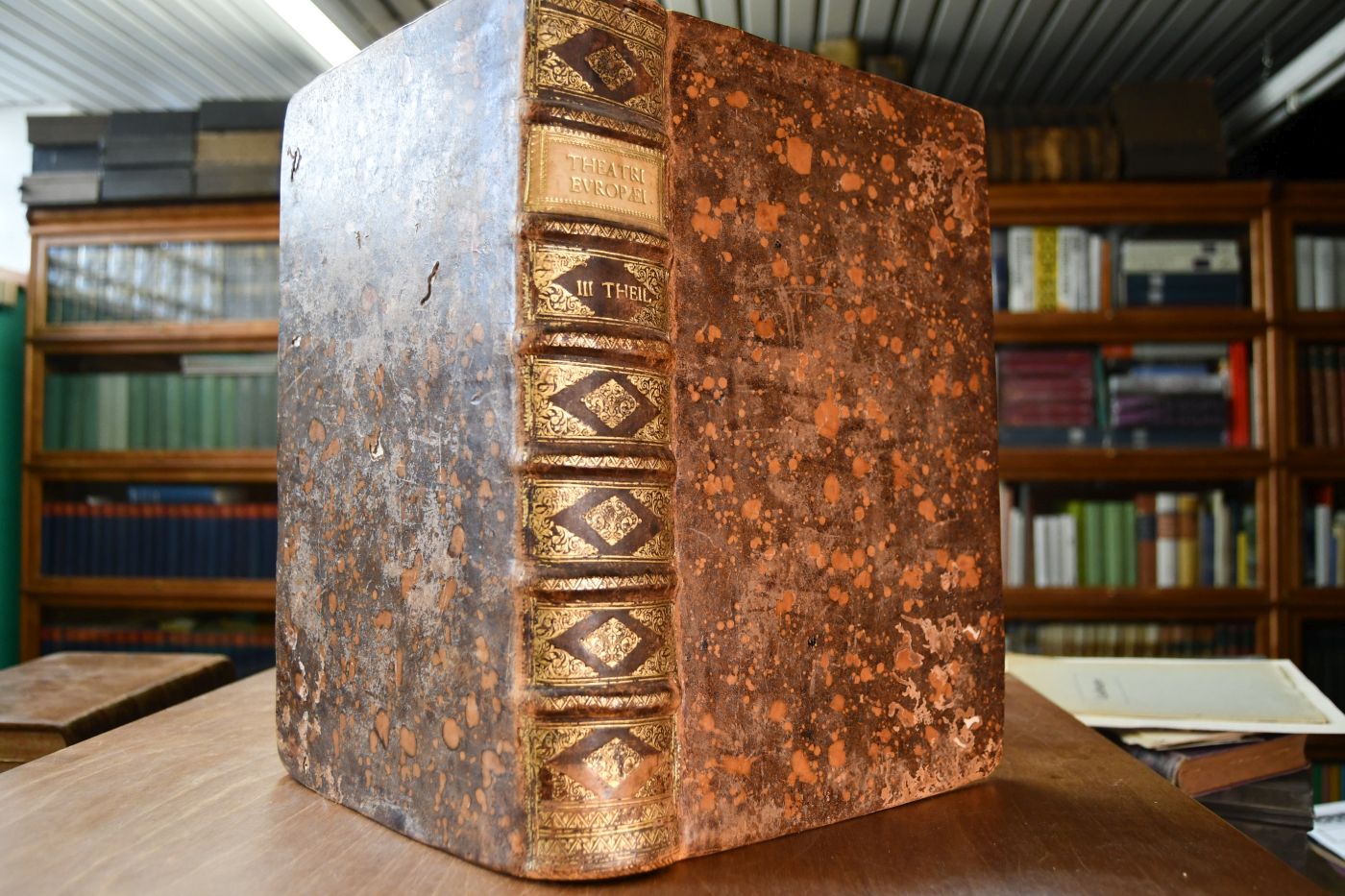 Beschreibung Einband berieben und bestoßen. Deckel mit Wurmspuren.Titelblatt mit Mäusefraß und Fehlstelle. Druckspiegel gebräunt. Dritter Teil der Fortsetzung von J. P. Abelins "Historischer Cronik" (das Grundwerk reichte nur bis 1619). "Schon Merian trug dem Verfasser auf, jenen ersten Band bis an die Gegenwart fortzuführen. Von dieser Fortsetzung erschien zuerst 1633 der 2. Theil, die Jahre 1629-33 umfassend [...] 1635 folgte der erste Band nach, die Jahre 1619-29 umfassend, mit dem hier zuerst gebrauchten Titel `Theatrum Europaeum` [...] Im Lauf der Jahre folgten dann noch 19 weitere Bände, das `Theatrum` bis 1738 fortführend" (ADB I, 18f.). Den vorliegenden Band besorgte der hessische Theologe und gelehrte Schulmeister H. Oraeus (1584-1646). Mit folgenden Porträtkupfern:General Johann Altringer, General Johann Georg von Arnheim, Vladislaus IV König in Polen, Graf Thomas Howard von Arundel Englischer Botschafter, Axel Oxenstern schwedischer Kanzler, Pfalzgraf Christian zu Birkenfeld, Markgraf Friderich zu Baden, Kardinal Ferdinand Infant zu Spanien, Rheingraf Ott Ludwig, Karl Herzog zu Lothringen, Maximilian Landgraf zu Stülingen, Gaston von Frankreich, Thomas Franz Herzog in Savoyen, Gustav Horn, Graf Ludwig Heinrich zu Nassau Dillenberg,Jean de S. Bonnet, Herr von Toyras, D. Anthonius Wolff a Todenwart Hessen-Darmstattischer Cantzler, Pfalzgraf Carl Ludwig Kurprinz, Thomas Parr 150 Jar alt, Henrich Burggraf zu Dona, Herzog Eberhard zu Württemberg, Philipp IV. König in Hispanien, Generalfeldmarschall Dodo von Inhaussen und Knipphaussen, Henricus de Rohan Prinz von Leon, Johann Baron de Werth Generalfeldmarschall, Christoff Artiszewsky Generalleutnant in Brasilien, Markgraf Wilhelm zu Baden, Graf Moritz von Nassau General in Brasilien, General Johann Banner, Kaiser Ferdinand der Dritte, Kaiser Ferdinan der Zweite, Charles de Crecquuy Marschall von Frankreich, Generalmajor Jacob Ramsay, Herzog Bernhard zu Sachsen Weimar, Generalleutnant Matthias Graf von Gallas, Obrist Reinhold von Rosen, Baron de Bassompiere.