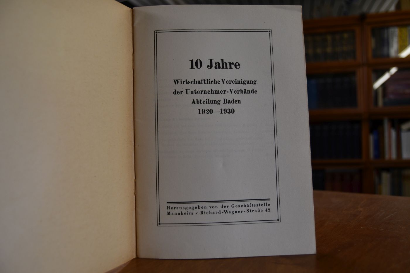 10 Jahre Wirtschaftliche Vereinigung der Unternehmer-Verbände Abteilung Baden 1920-1930.