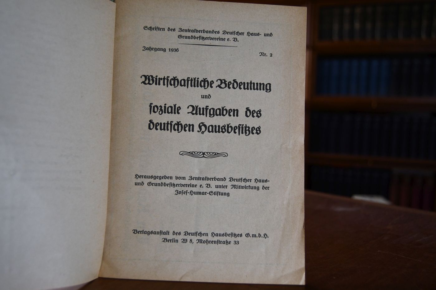 Schriften des Zentralverbandes Deutscher Haus- und Grundbesitzervereine e.V. Jahrgang 1936, Nr. 2.