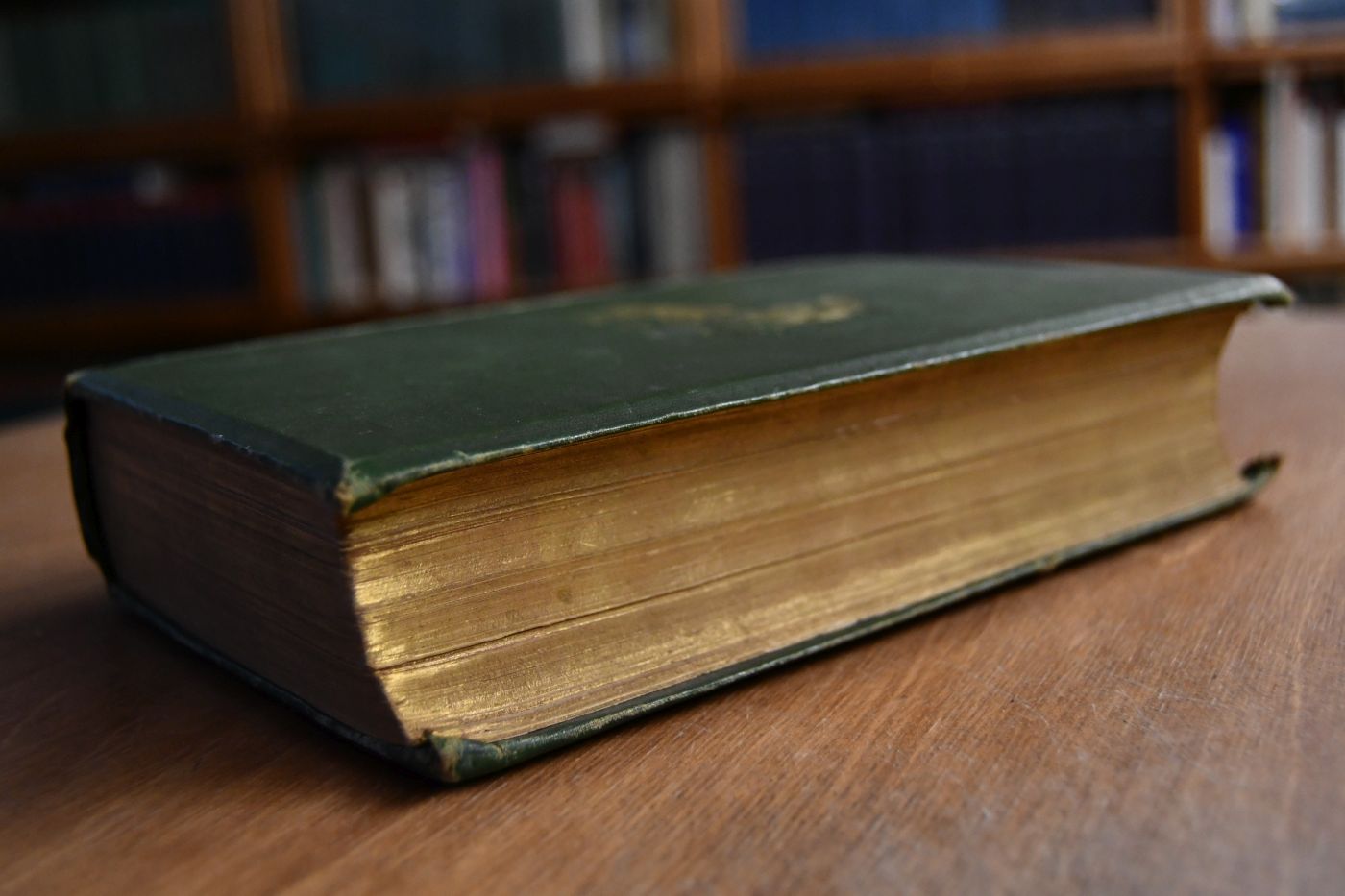 Format 22 x 15 cm, ill. Leinen ohne Schutzumschlag mit umlaufendem, stumpfem Goldschnitt
