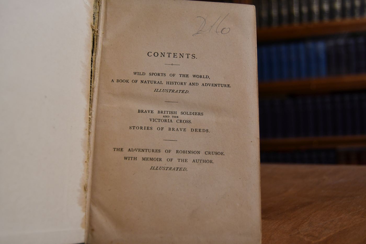 Inhalt: Wild sports of the world, a book of natural history and adventure; illustrated -- Brave British soldiers and the Victoria Cross, stories of brave deeds -- The adventures of Robinson Crusoe, with memoir of the author; illustrated.