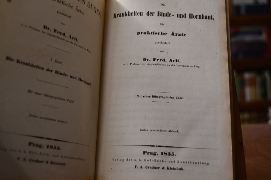 Die Krankheiten des Auges für praktische Ärzte geschildert. 3 Bde. in einem Band. 1. Die Krankheiten der Binde- und Hornhaut; 2. Die Krankheiten der Sclera, Iris, Chorioidea und Linse; 3. Die Krankheiten des Glaskörpers, der Netzhaut, der Augenmuskeln, der Augenlider, der Thränenorgane und der Orbita.