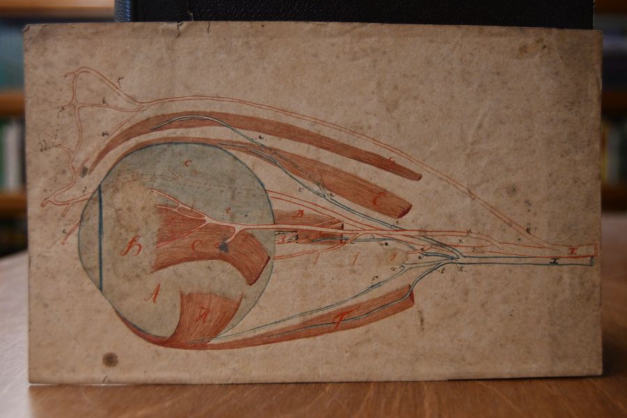Beschreibung Einband berieben, bestoßen, angeschmutzt und miut handschriftlicher Deckelbeschriftung. Handschriftliche Besitzereinträge auf Spiegel und fliegendem Vorsatz. Durchgehend fleckig. Beiliegend eine beschriftete Zeichnung eines Auges.