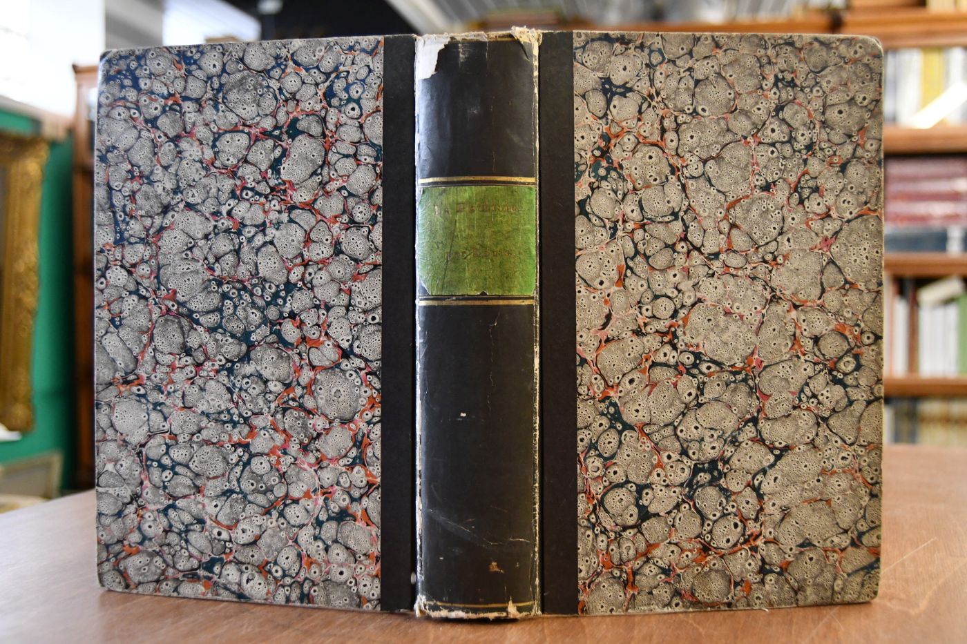 Beschreibung Einband berieben, bestoßen und am Rücken mit etwas Verlust des Überzugpapiers. Handschriftlicher Besitzereintrag auf fliegendem Vorsatz. Durchgehend fleckig.