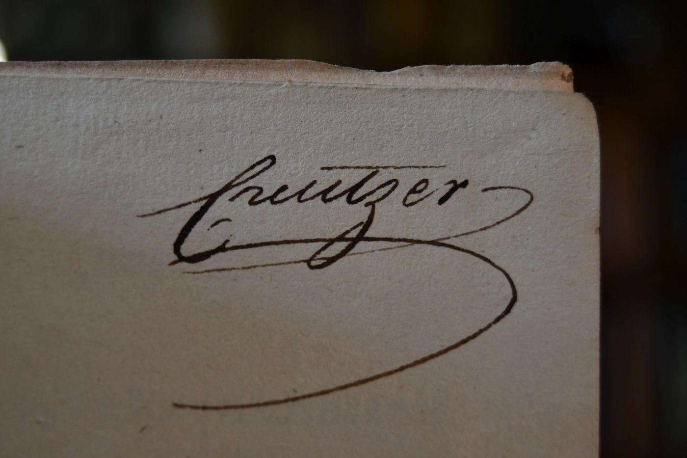 Beschreibung Einband berieben und bestoßen. Rücken ausgebleicht. S. XIII/XIV halbseitig gelöst und vorgefallen. Gelegentlich etwas fleckig. Handschriftlicher Besitzereintrag (Creutzer) auf dem fliegenden Vorsatz.
