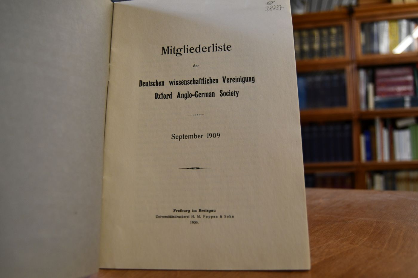 Mitglieder-Liste der deutschen wissenschaftlichen Vereinigung, Oxford Anglo-German Society. September 1909.