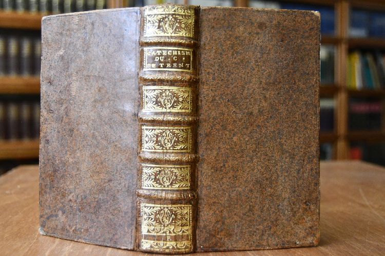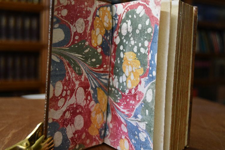 Format 17 x 10 cm, Leder der Zeit auf 5 Bünden, Stegrand- und Rückenvergoldung sowie umlaufendem Sprengschnitt
