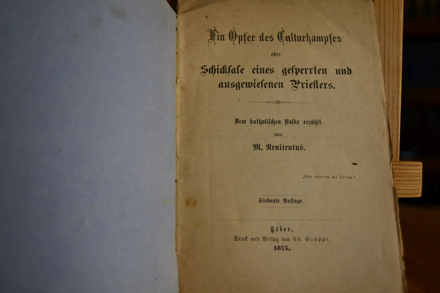 Ein Opfer des Kulturkampfes oder Schicksale eines gesperrten und ausgewiesenen Priesters.