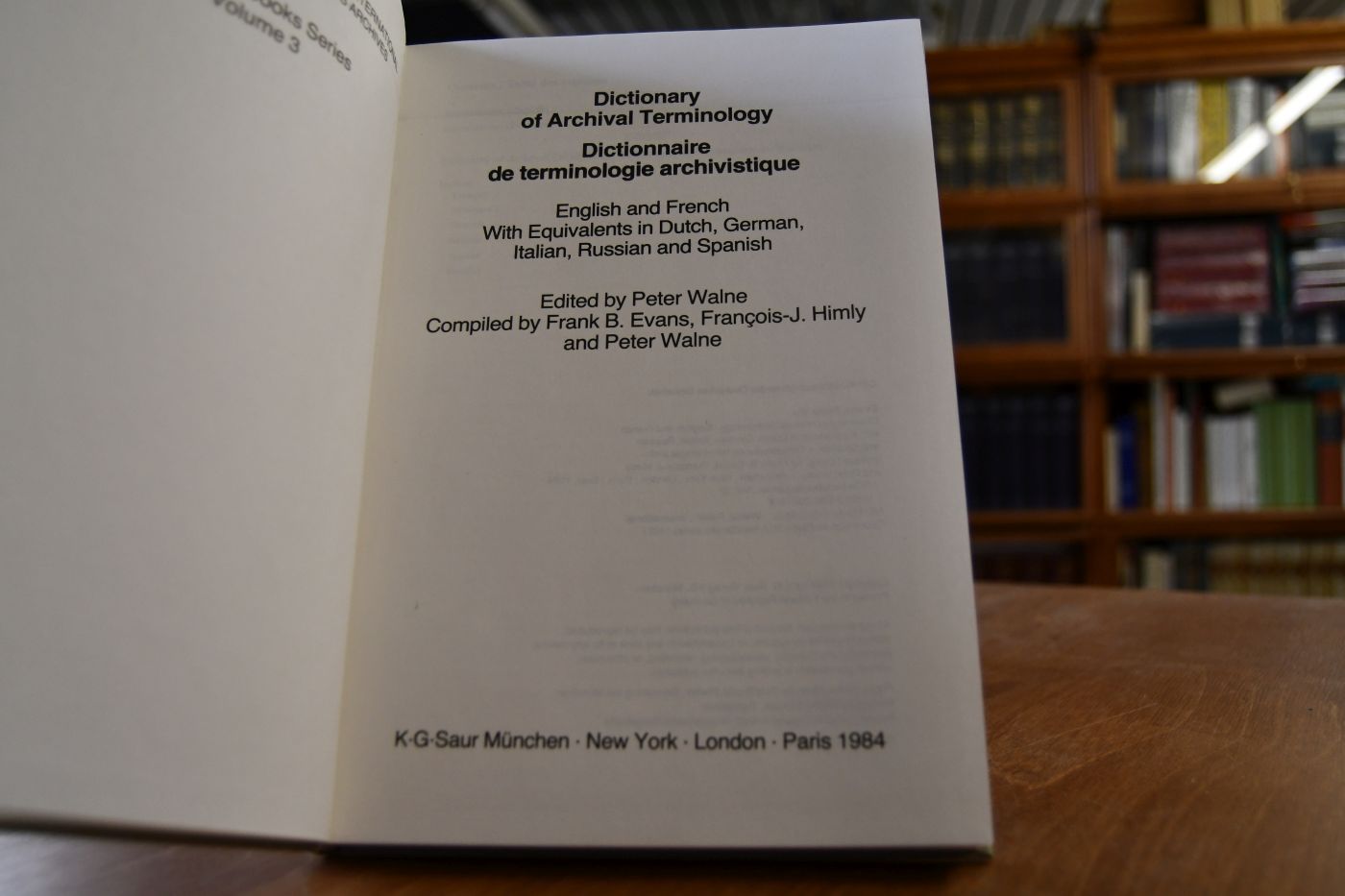 Dictionary of archival terminology English and French with equivalents in Dutch, German, Italian, Russian, and Spanish.