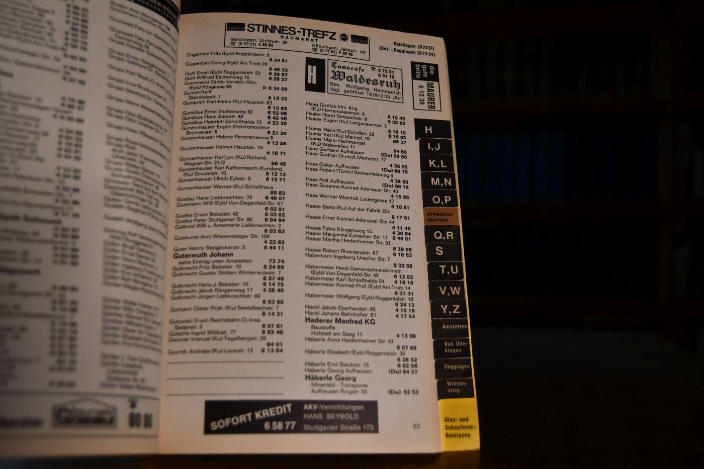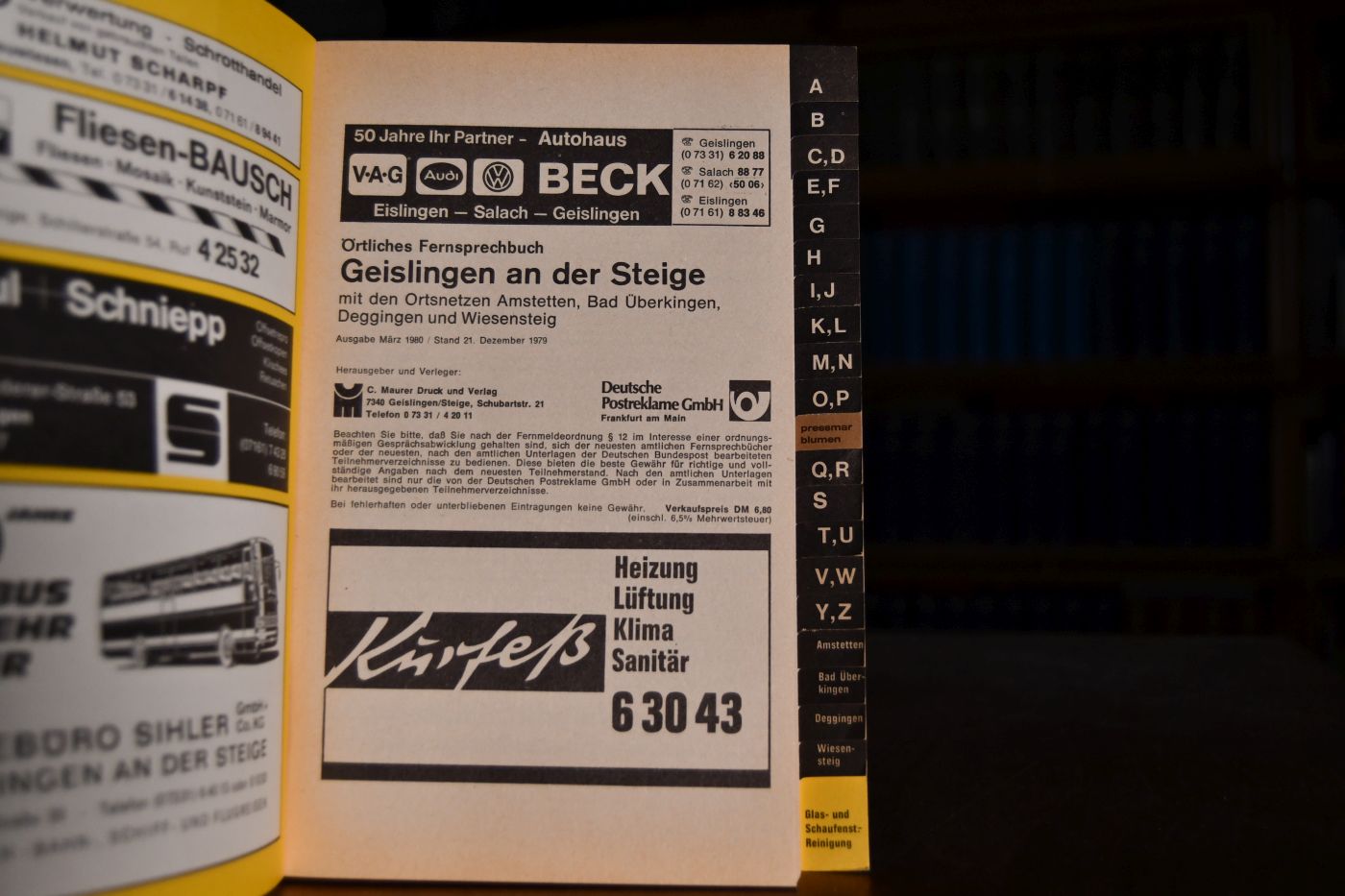 Örtliches Fernsprechbuch Geislingen an der Steige mit den Ortsnetzen Amstetten, Bad Überkingen, Deggingen und Wiesensteig.