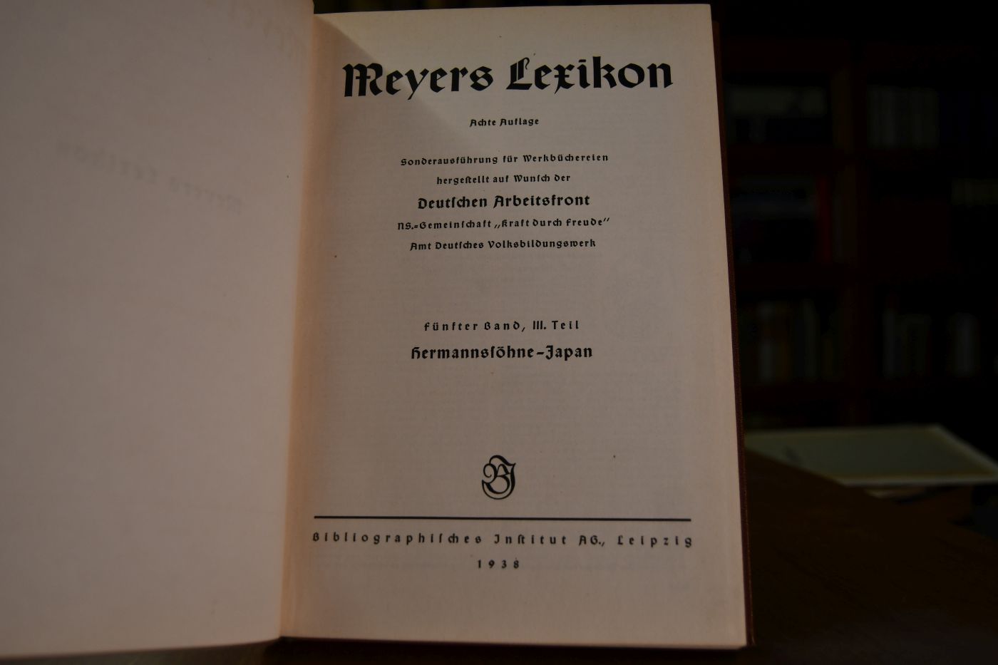 Sonderausführung für Werkbüchereien hergestellt auf Wunsch der Deutschen Arbeitsfront NS.-Gemeinschaft "Kraft durch Freude" Amt Deutsches Volksbildungswerk