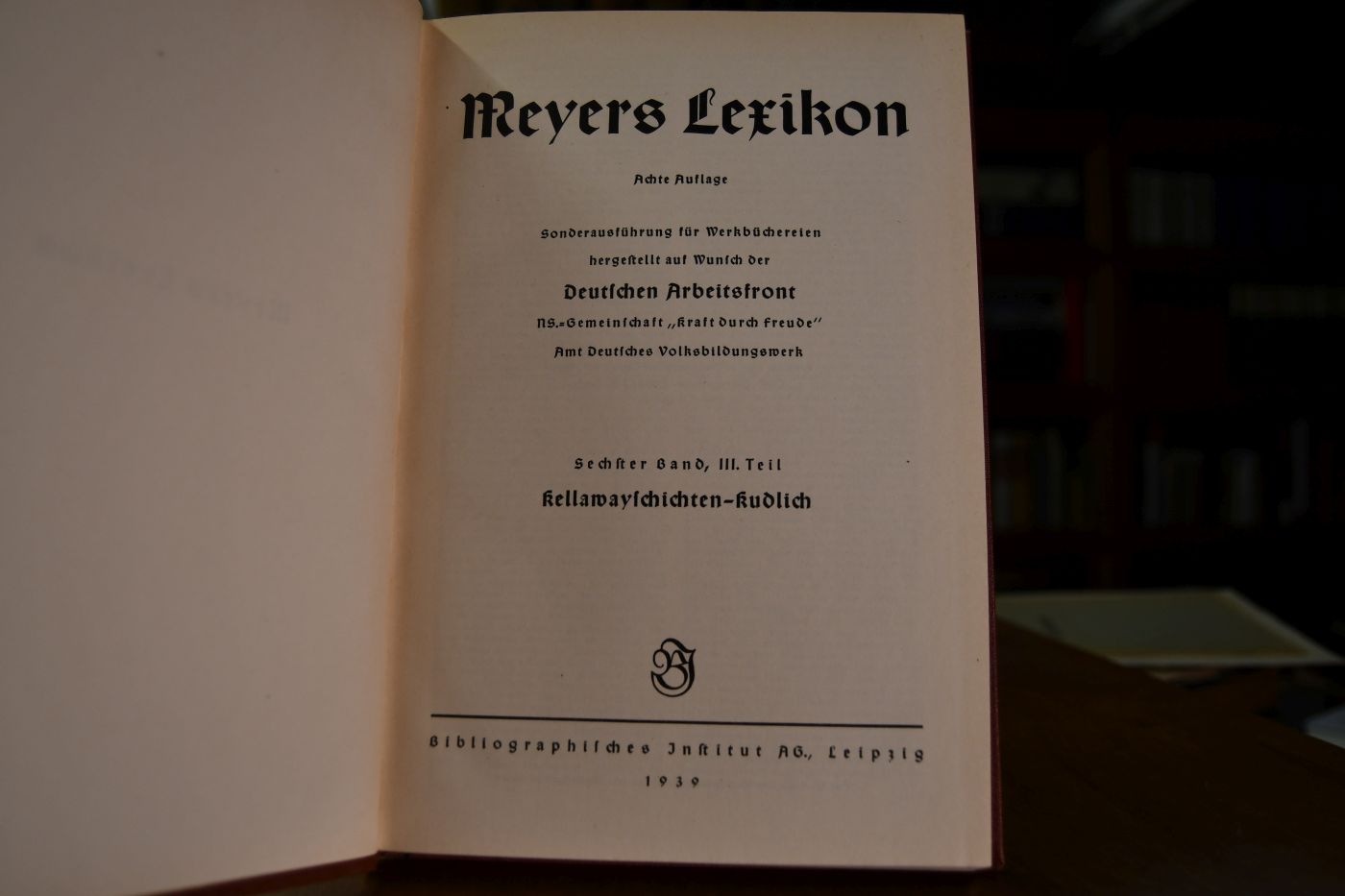 Sonderausführung für Werkbüchereien hergestellt auf Wunsch der Deutschen Arbeitsfront NS.-Gemeinschaft "Kraft durch Freude" Amt Deutsches Volksbildungswerk