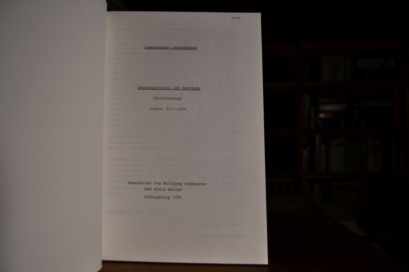 Staatsarchiv Ludwigsburg. Gesamtübersicht der Bestände (Kurzfassung) Stand 31.1.1974.