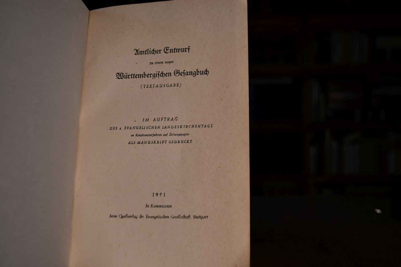Amtlicher Entwurf zu einem neuen Württembergischen Gesangbuch (Textausgabe). Im Auftrag des 4. Evangelischen Landeskirchentags als Manuskript gedruckt.