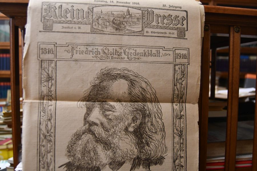 Beschreibung Titelblatt berieben, bestoßen, mit Einrissen und etwas Verlust. Innen mit Randeinrissen und etwas Verlust (kein Text). "Friedrich Stoltze (* 21. November 1816 in Frankfurt am Main; † 28. März 1891 ebenda) war ein deutscher Dichter und Schriftsteller. Er war Journalist und Verleger in Frankfurt am Main und setzte sich Zeit seines Lebens publizistisch für die nationale Einigung Deutschlands sowie für ein demokratisches und republikanisches Staatswesen ein. Obwohl der größte Teil seines Werkes aus politischen Schriften besteht, vor allem als Herausgeber der Satirezeitschrift Frankfurter Latern, ist er in der Öffentlichkeit seiner Heimatstadt vor allem durch seine Gedichte in Frankfurter Mundart in Erinnerung." (Wikipedia)
