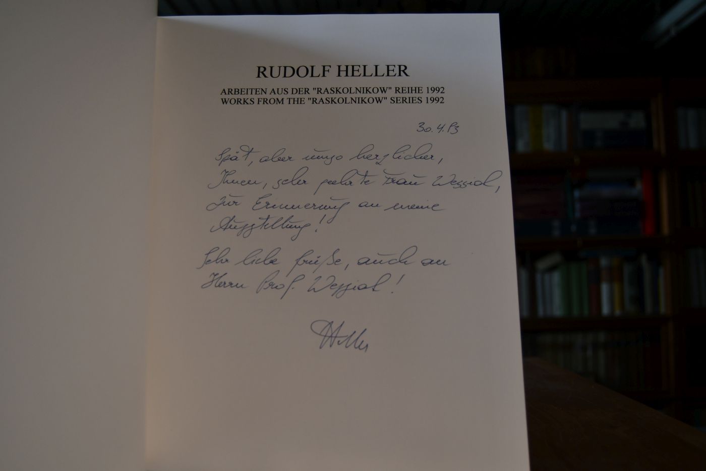 Beschreibung Einband berieben, bestoßen und gedrückt. 6-zeilige Handschriftliuche Widmung von Rudolf Heller auf dem Titel und handschriftlich abgeänderte Anschrift im Kolophon.