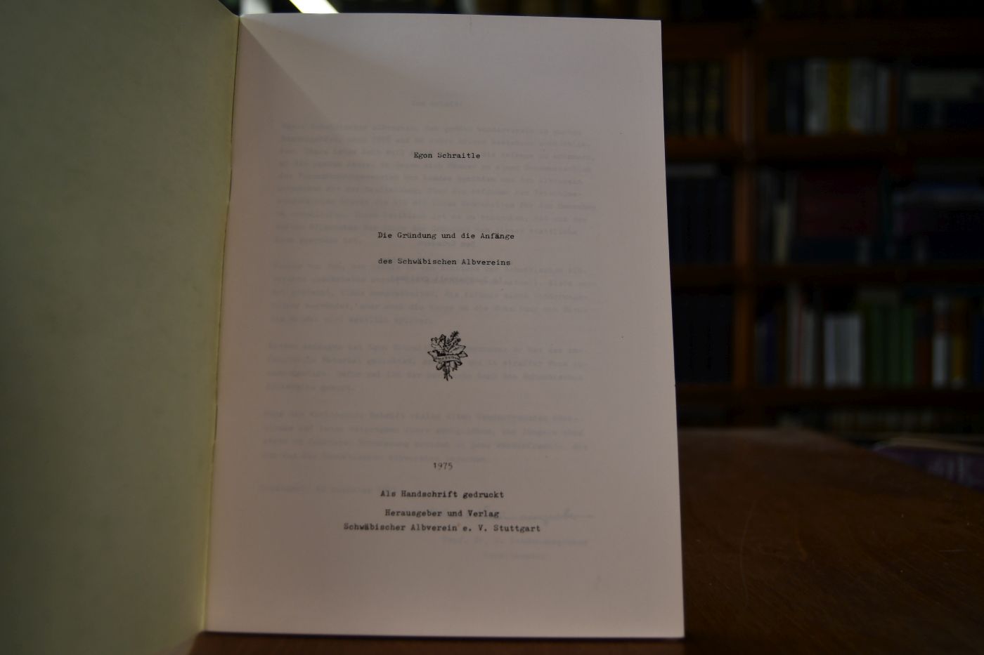 Die Gründung und die Anfänge des Schwäbischen Albvereins. Als Handschrift gedruckt.