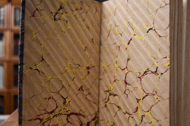 Format 25 x 17 cm, Halbleder der Zeit mit 5 Bünden und Rückenvergoldung