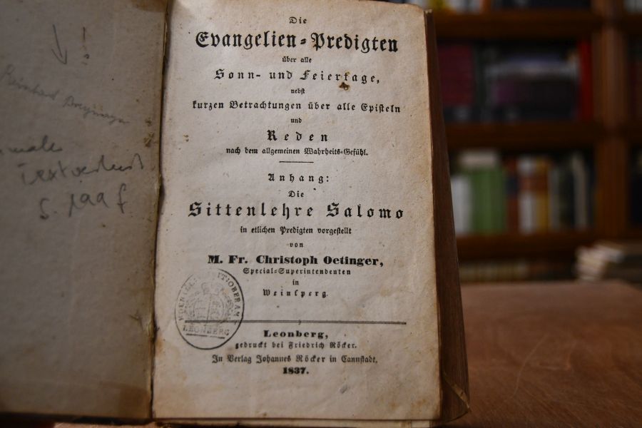 Die Evangelien-Predigten über alle Sonn- und Feiertage, nebst kurzen Betrachtungen über alle Episteln und Reden nach dem allgemeinen Wahrheits-Gefühl. Anhang Die Sittenlehre Salomo in etlichen Predigten vorgestellt. 2 Theile in einem Band (komplett).