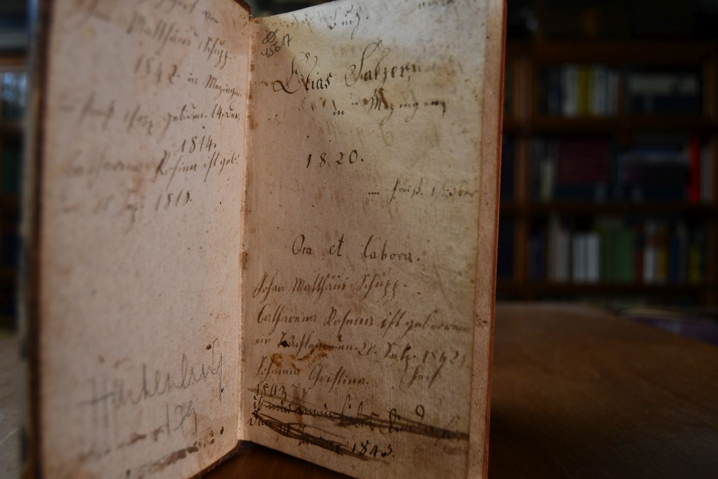 Beschreibung Einband berieben, bestoßen und angeschmutzt. Rücken brüchig mit etwas Verlust. Innen durchgehend fleckig. Vorsätze mit handschriftlichen Eintragungen von alter Hand (Familiennachrichten von Johan Matthäus Schupp in Metzingen, ebenso handschriftlicher Besitzereintrag von Elias Salzer in Metzingen). Gutes Leseexemplar. Mälzer Nr. 1827. "