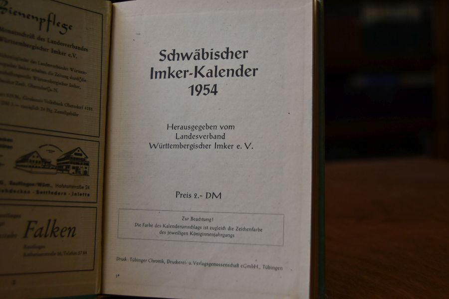 Beschreibung Einband berieben und bestoßen. Schnitt fleckig. Innen sauber. Notizteil mit Bleistiftnotizen eines Bienenzüchters.