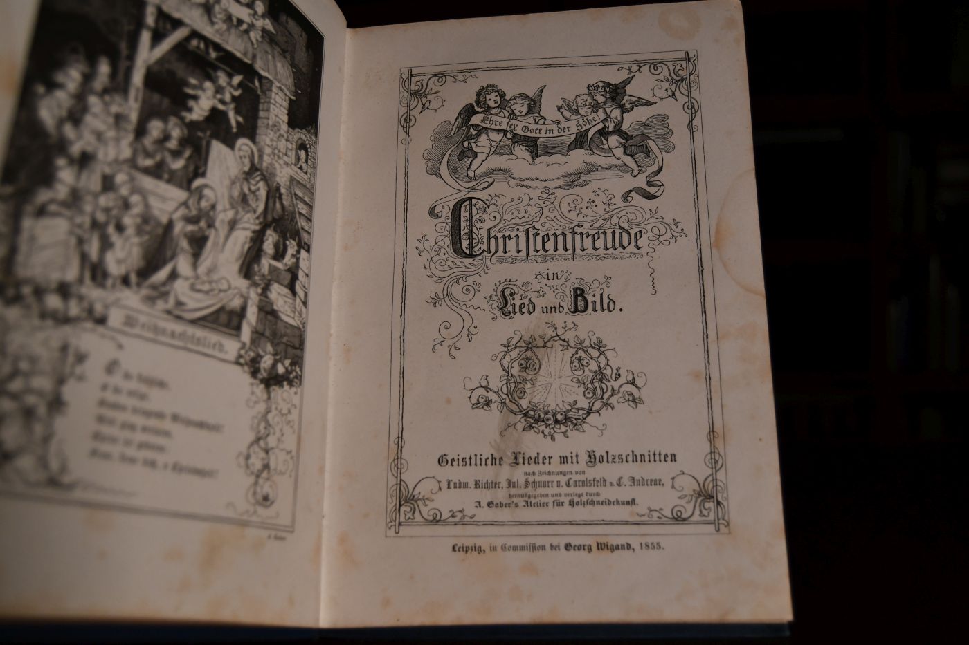 Christenfreude in Lied und Bild. Geistliche Lieder mit Holzschnitten nach Zeichnungen von Ludw. Richter, Jul. Schnorr v. Carolsfeld u. C. Andreae.