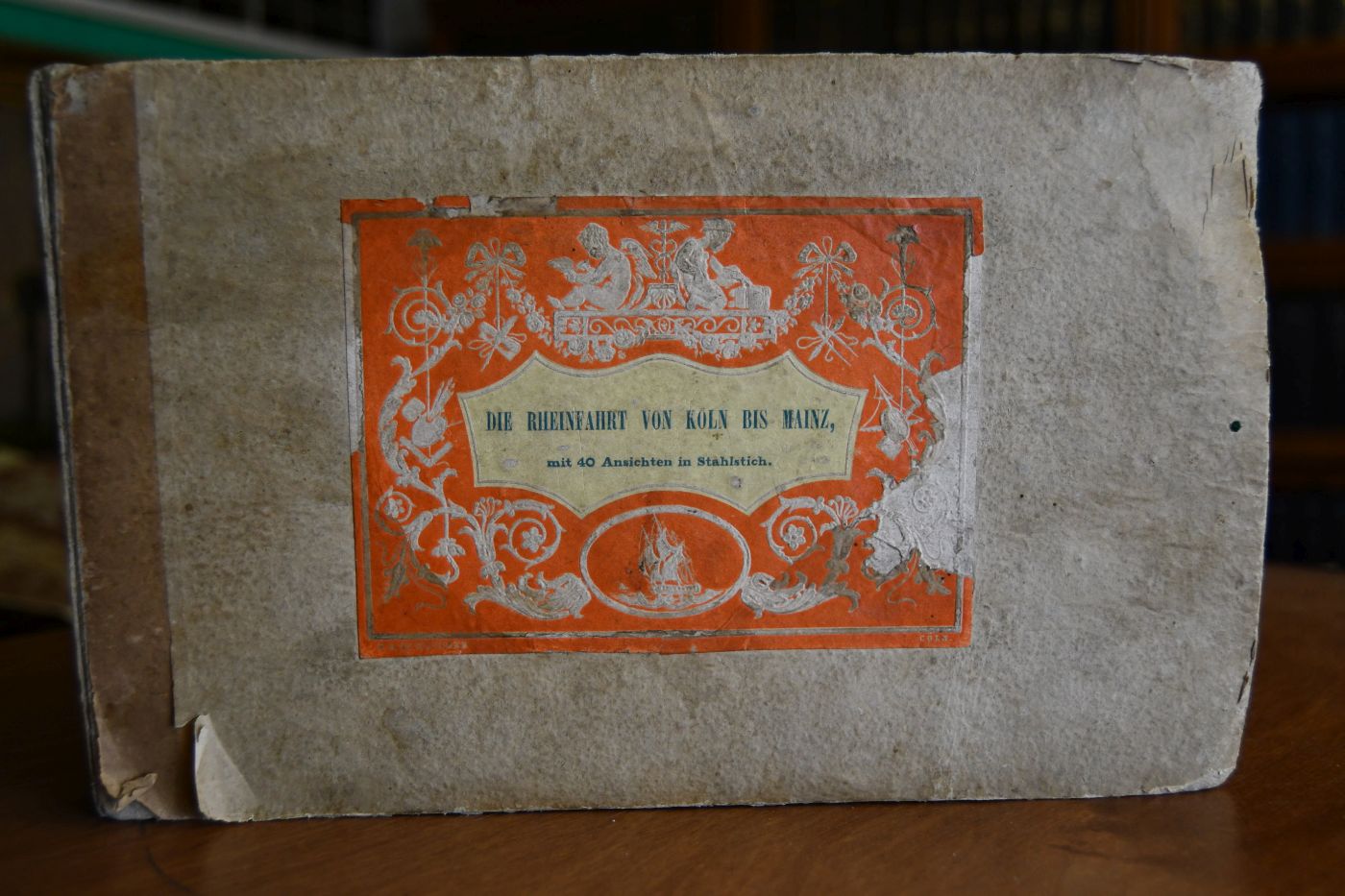 Beschreibung Einband berieben, bestoßen, angeschmutzt und mit Einrissen. Handschriftlicher Besitzereintrag (Marie Lerch) auf Innendeckel. Die Stahlstiche meist mit angeschmutzt, feuchtigkeitsrandig, fleckig und mit Randeinrissen. Die Textseiten teilweise fleckig, feuchtigkeitsrandig und mit Aufschneidespuren. Vorhandene Stahlstiche: 1. Düsseldorf von der Süd-West Seite, 2. Köln, 3. Andernach, 4. Neu-Rheineck, 5. Die Moselbrücke bei Coblenz, 6. Braubach und die Marksburg, 7. Stolzenfels, Lahneck und Oberlahnstein, 8. Stolzenfels, 9. Bacharach, 10. Liebenstein, Sternfels und Kloster Bernhofen, 11. St. Goar und Ruinen der Bergfestung Rheinfels, 12. Ruinen von Falkenberg, 13. Burg Rheinstein, 14. Thal von Engelhölle und Ruinen von Schönberg, 15. Bingen, 16. Rüdesheim, 17. Johannisberg, 18. Der Brandhof, 19. Mainz, 20. Der Marktplatz zu Düsseldorf, 21. Das Rathingerthor zu Düsseldorf, 22. Neuss, 23. Elberfeld, 24. Barmen, 25. Schloss Eltz. Auf Rückdeckelinnenseite aufkaschiert; Der Rheinfall bei Schaffhausen. Von grosser Seltenheit. Im KVK läßt sich kein Exemplar an einer deutschsprachigen Bibliothek nachweisen. Bei Reiss wurde1993 ein Exemplar mit 28 Stahlstichen und einer Rheinlaufkarte versteigert.