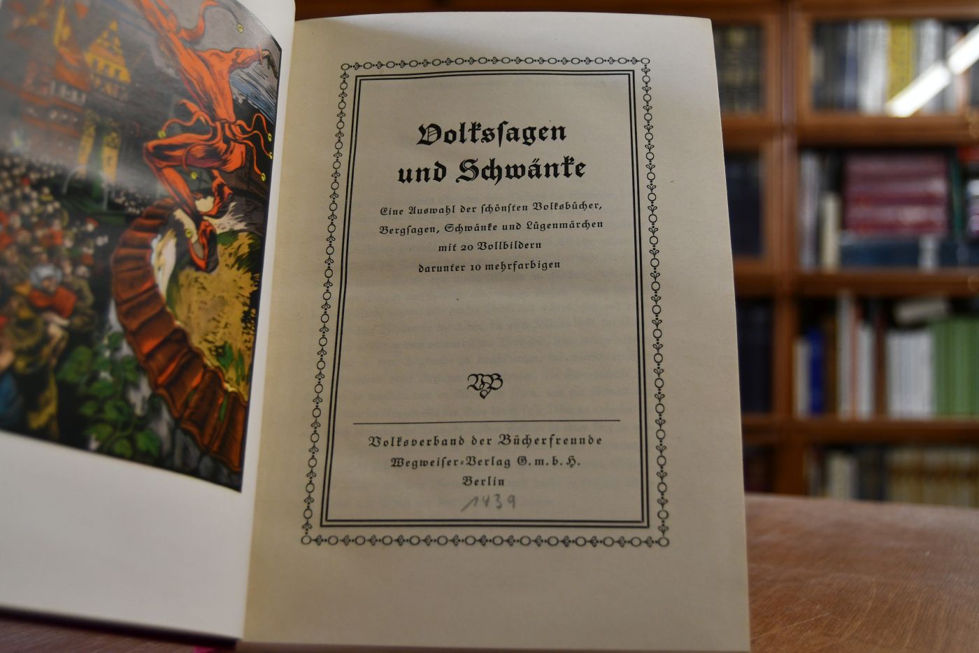 Volkssagen und Schwänke. Eine Auswahl der schönsten Volksbücher, Bergsagen, Schwänke und Lügenmärchen mit 20 Vollbildern darunter 10 mehrfarbigen.