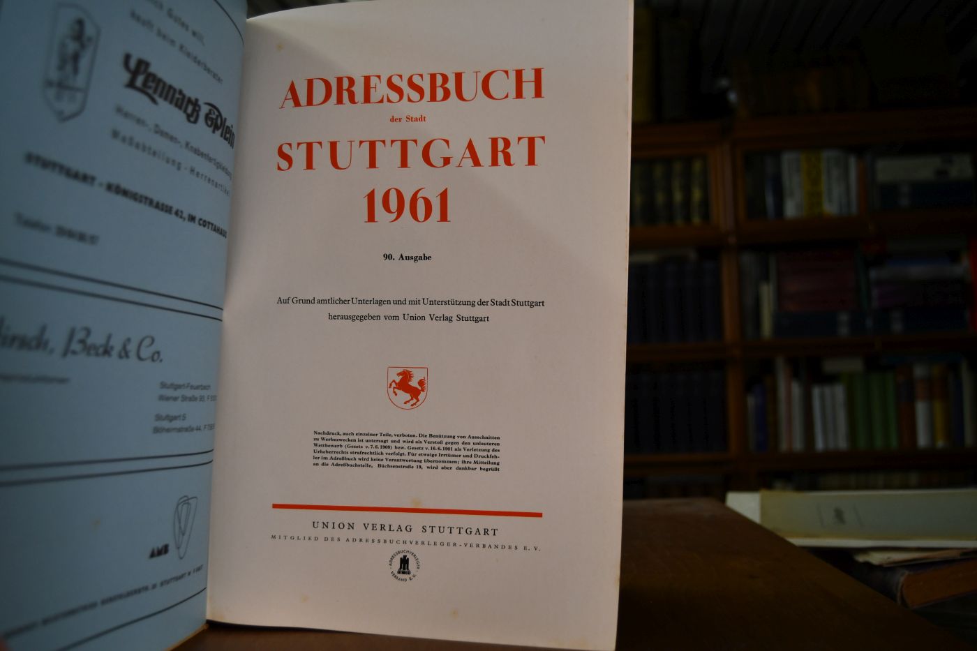 Adressbuch der Stadt Stuttgart 1961. 90. Ausgabe.