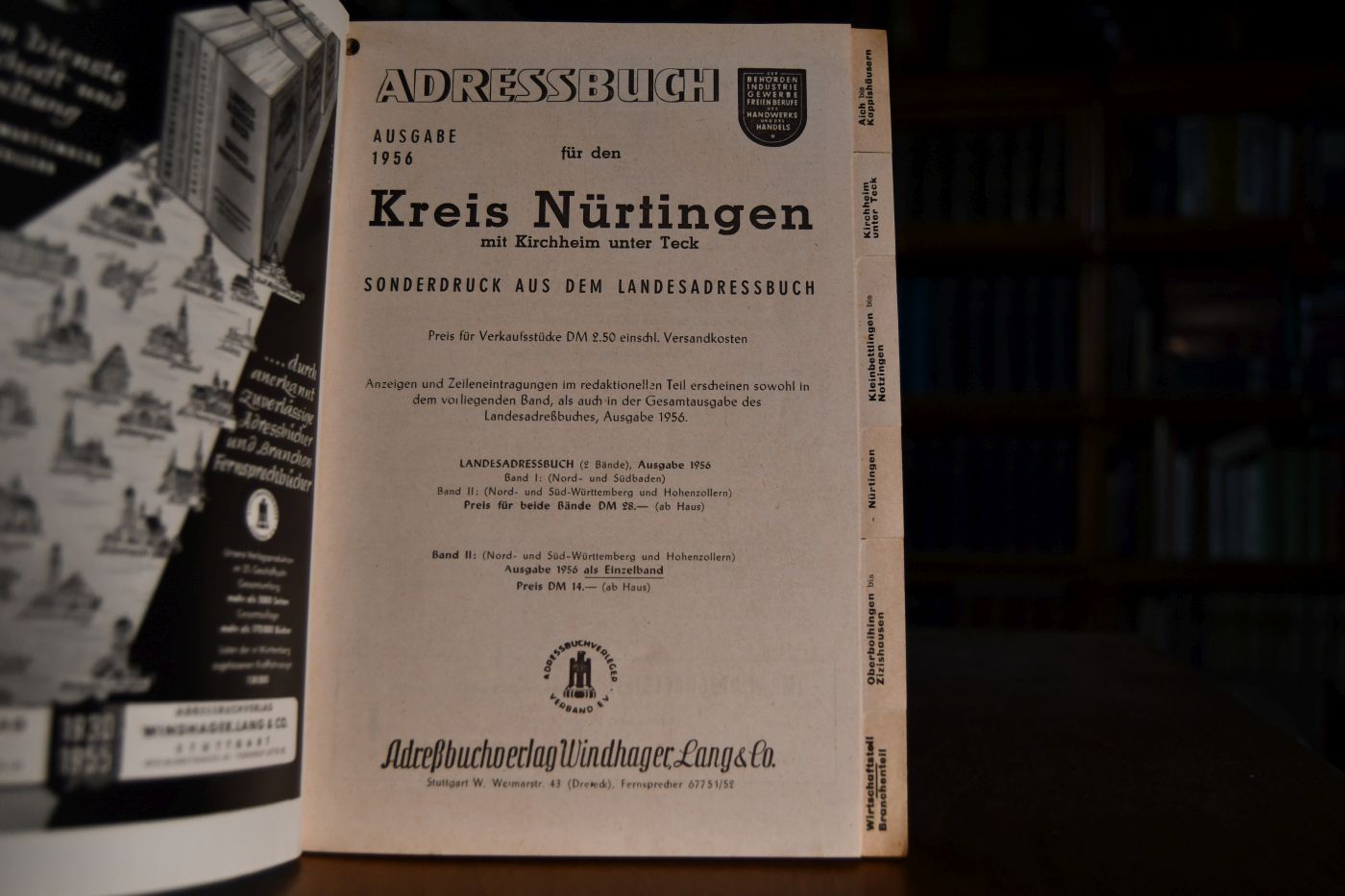 Adressbuch für den Kreis Nürtingen mit Kirchheim unter Teck. Ausgabe 1956.