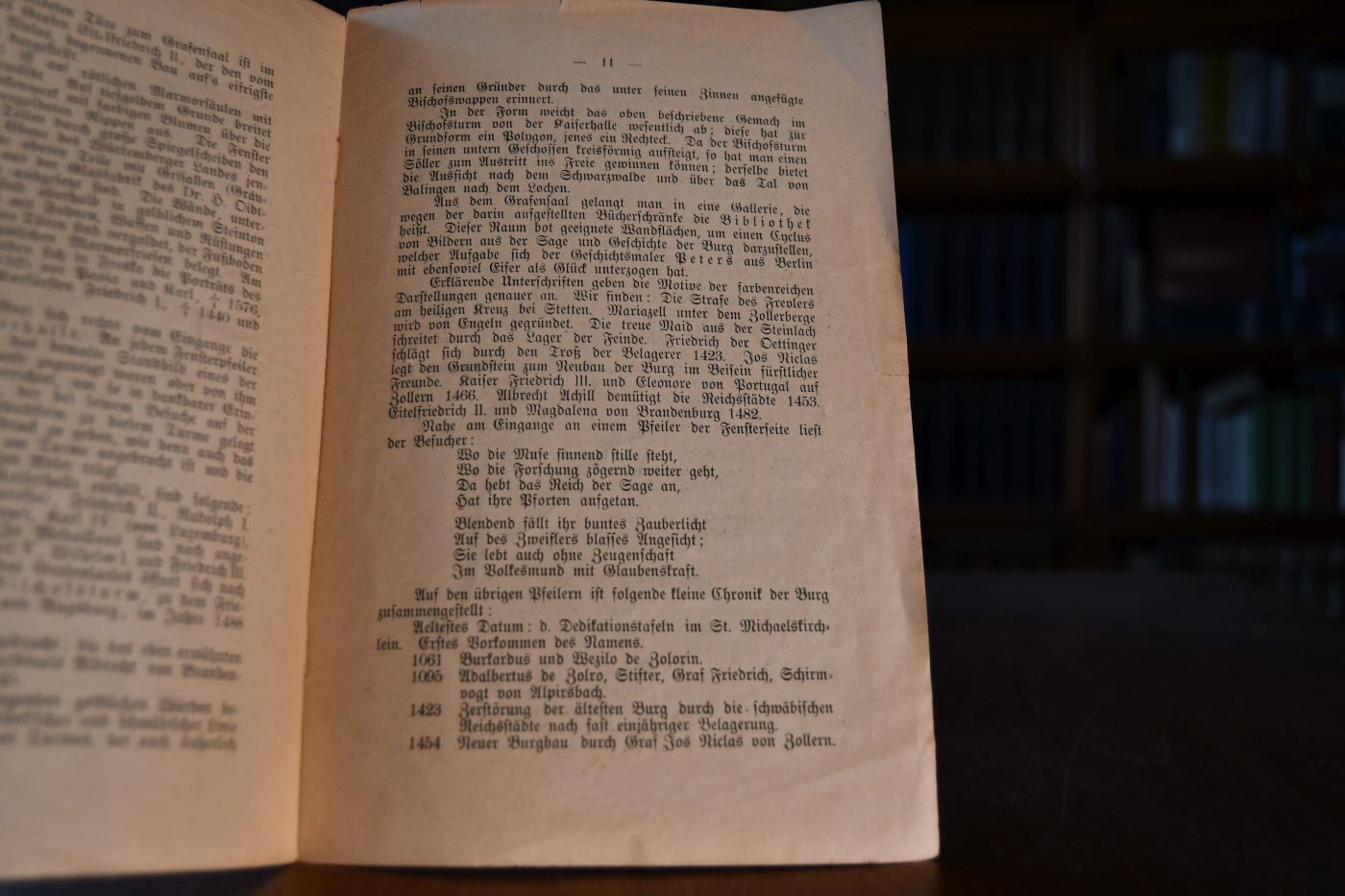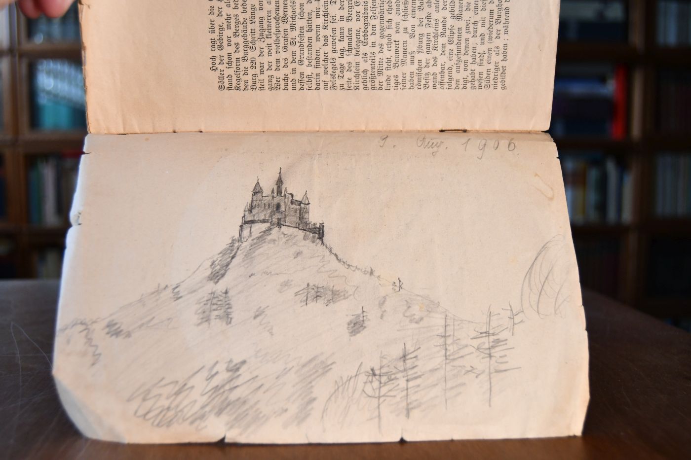 Beschreibung Einband berieben, bestoßen, fleckig, mit Einrissen und Verlust. Datierte Bleistiftzeichnung der Burg Hohenzollern auf Innendeckel. Eselsohrig und mit Einrissen.