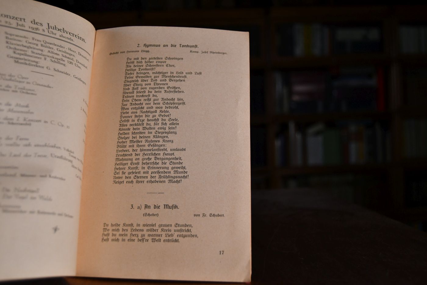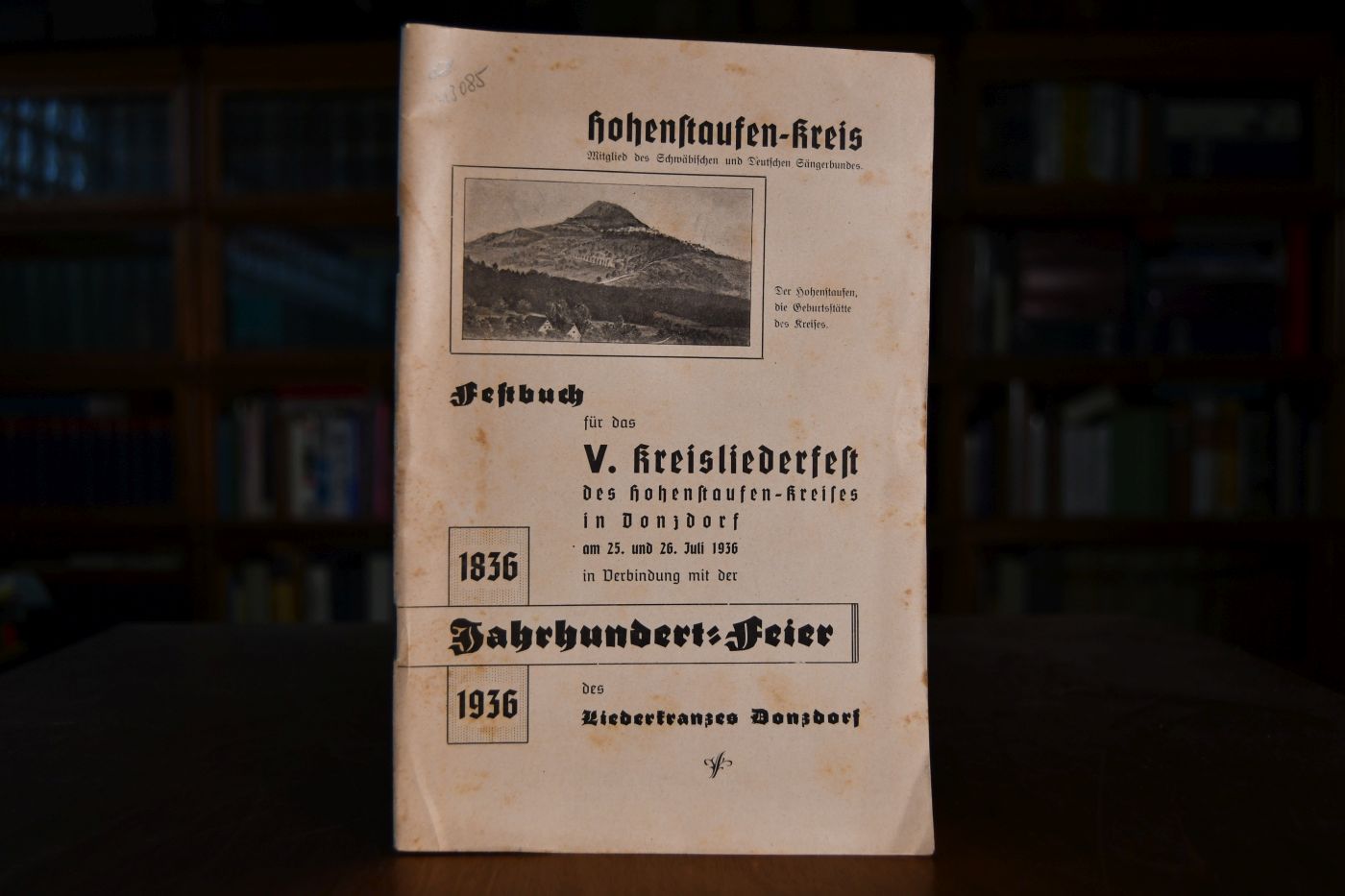 Festbuch für das V. Kreisliederfest des Hohenstaufen-Kreises in Donzdorf am 25. und 26. Juli 1936 in Verbindung mit der Jahrhundertfeier des Liederkranzes Donzdorf.
