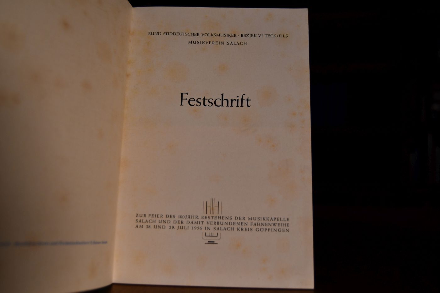 Festschrift zur Feier des 100jährigen Bestehens der Musikkapelle Salach und der damit verbundenen Fahnenweihe am 28. und 29. Juli 1956 in Salach Kreis Göppingen.