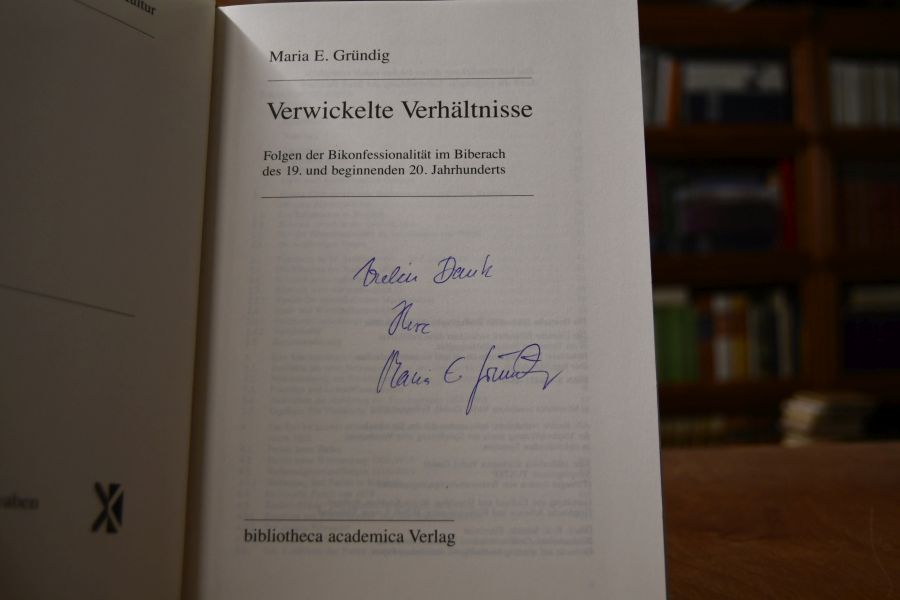 Beschreibung Schutzumschlag berieben. Mit handschriftlicher Widmung von Maria E. Gründig auf dem Titel. Innen sauber. Beiliegend das Redemanuskript von Hans-Georg Wehling für die Buchvorstellung am 10.12.2002 im Braith-Mali-Museum und eine Kopie des darüber berichtenden Artikels der Schwäbischen Zeitung.