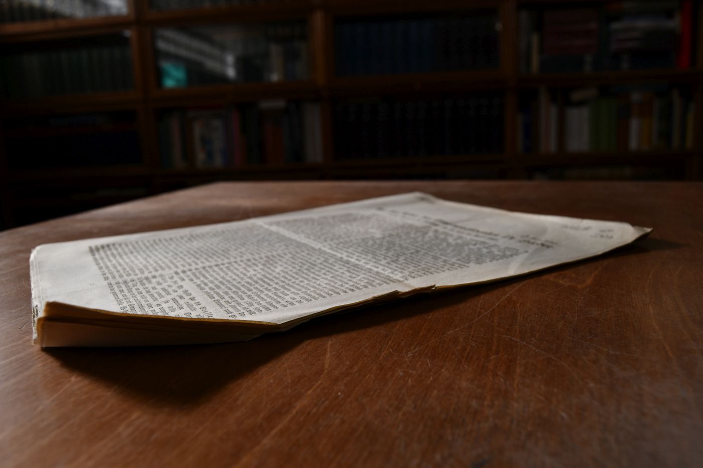 Format 32 x 24 cm, unaufgeschnittener, mehrfach gefalteter Druckbogen