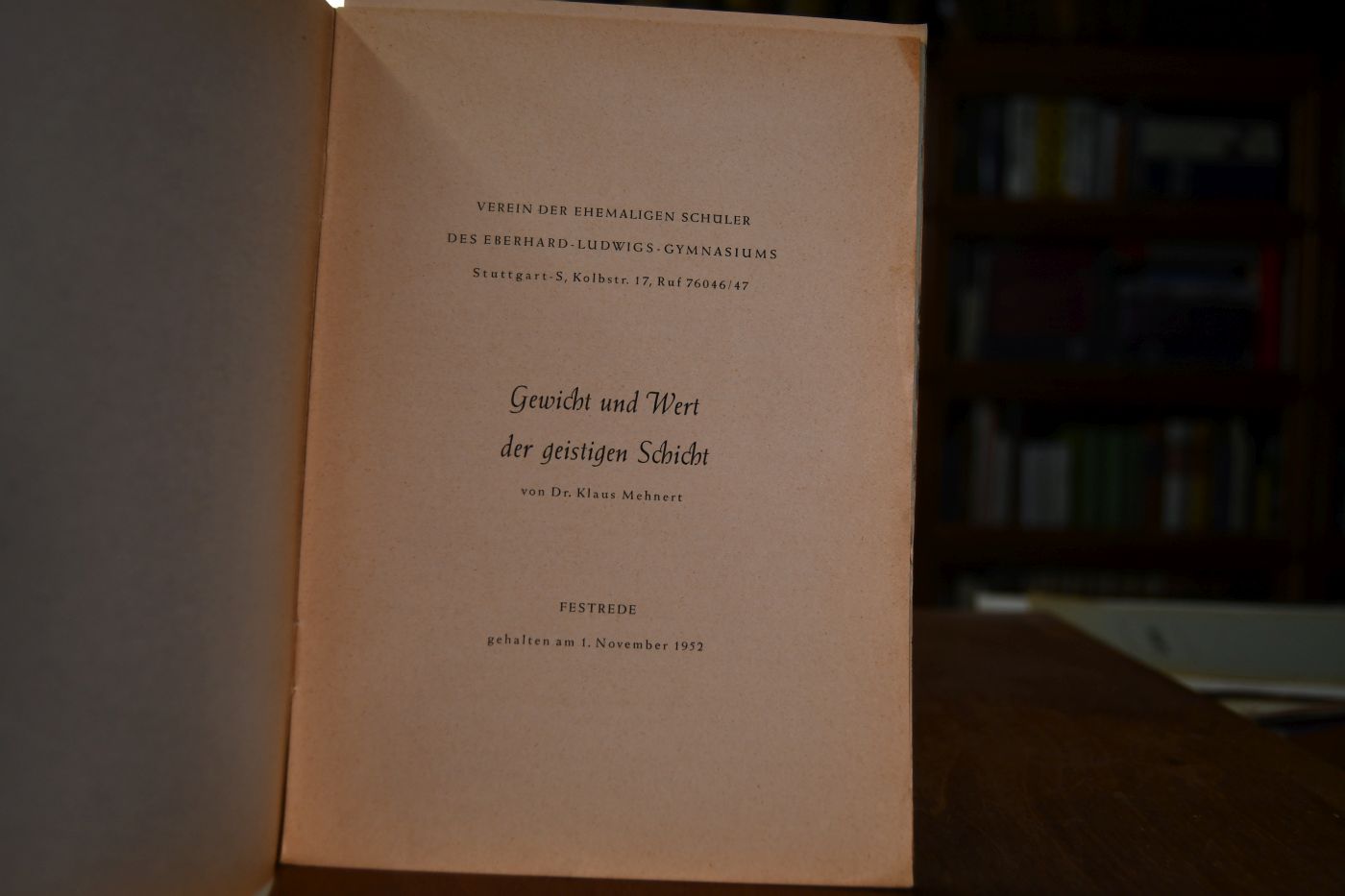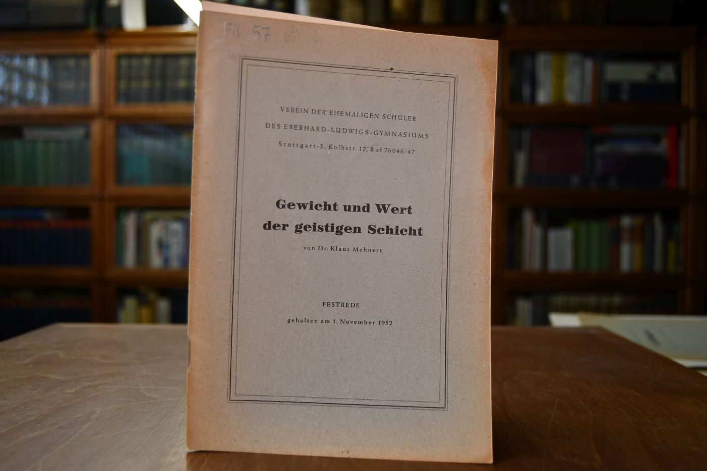 Gewicht und Wert der geistigen Schicht. Festrede gehalten am 1. November 1952.