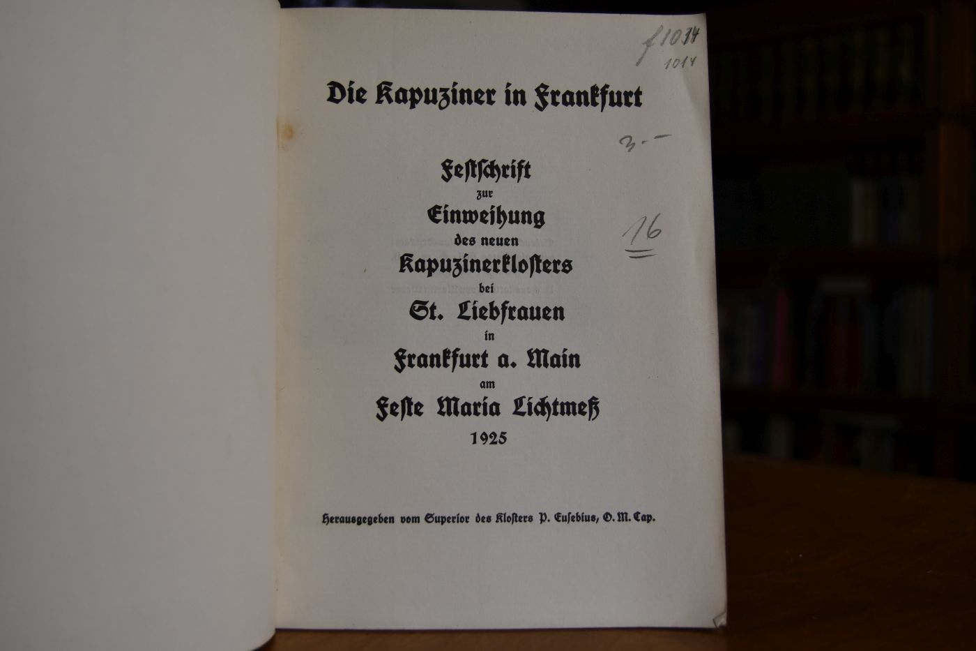 Die Kapuziner in Frankfurt Festschrift zur Einweihung des neuen Kapuzinerklosters bei St. Liebfrauen in Frankfurt a. Main am Feste Maria Lichtmeß 1925.