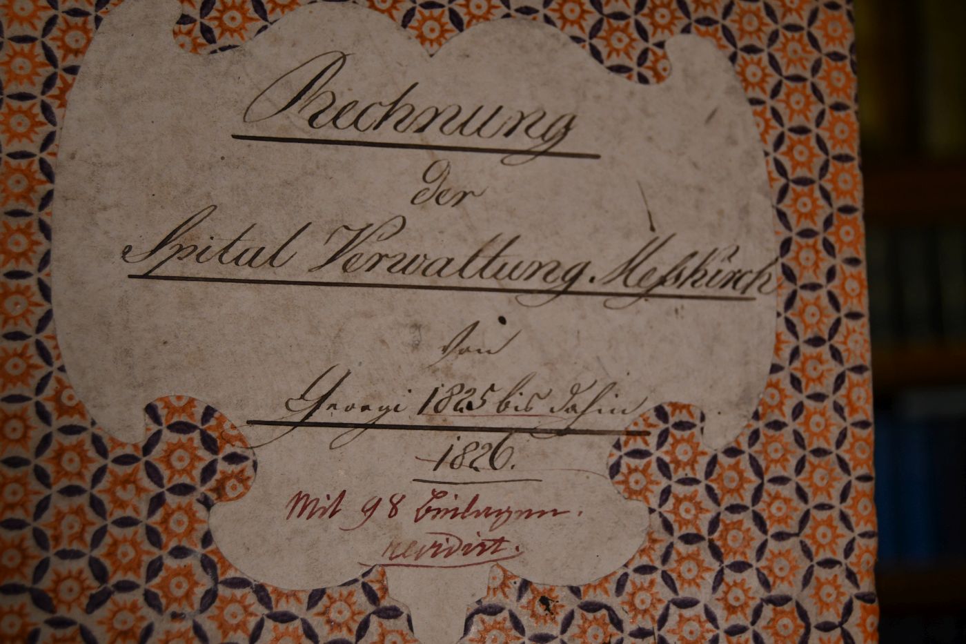 Rechnung über Alle Einnahmen und Ausgaben Früchten et Geld, bey dem Spital und Leprosiorum zu Meßkirch von St. Georgi 1825 bis dahin 1826.