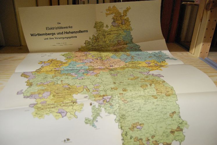 Karte Die Elektrizitätswerke Württembergs und Hohenzollerns und ihre Versorgungsgebiete. Mehrfach gefaltet.