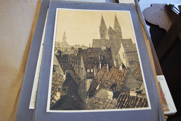 Alt-Bremen. 10 Original-Steinzeichnungen (vorhanden 8 von 10 [7 auf Karton und 1 lose], es fehlen die Blätter 4 und 5).