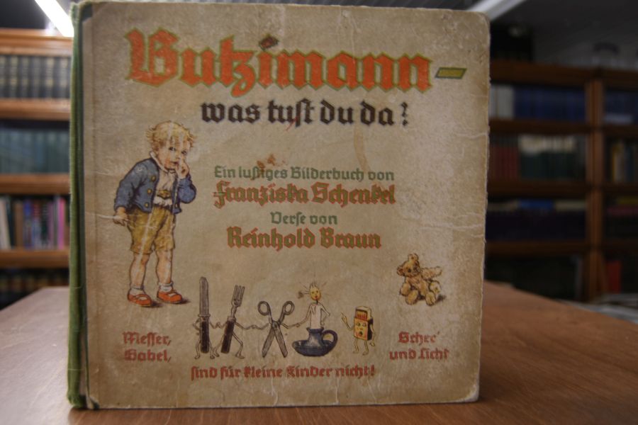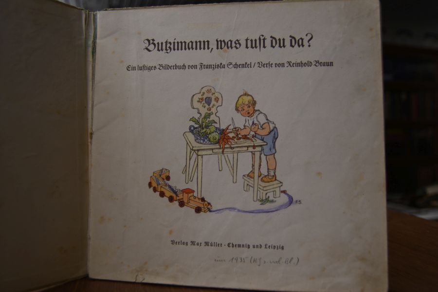 Beschreibung Einband berieben, bestoßen und am Rücken mit Einrissen. Einige Seiten mit Einrissen, Ausmalungen bzw. Kritzeleien. Durchgehend fingerfleckig und angeschmutzt. Ein stark gebrauchtes Exemplar dieses seltenen Kinderbuches.
