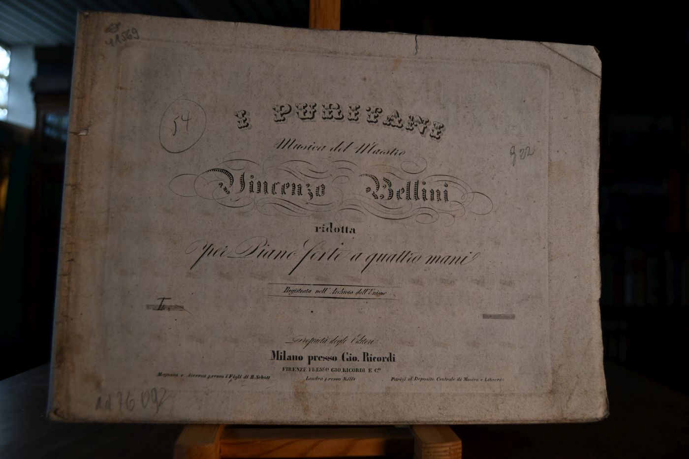 I Puritani. Musica del Maestro Vincenzo Bellini ridotta per Piano forte a quattro mani. Heft I. Riduzione T. Ricordi.