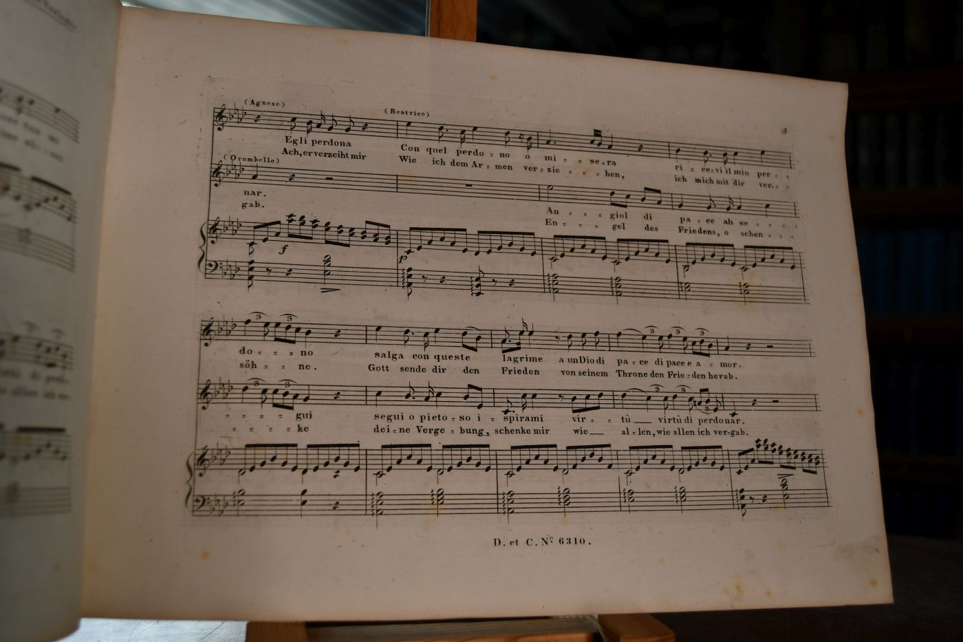 Terzettino (Canon) für 2 Sopran und Tenor. (Angiol di pace all` anima, Engel des Friedens stärke mich) aus der Oper Beatrice de Tenda (Das Castell von Ursino) von V. Bellini.